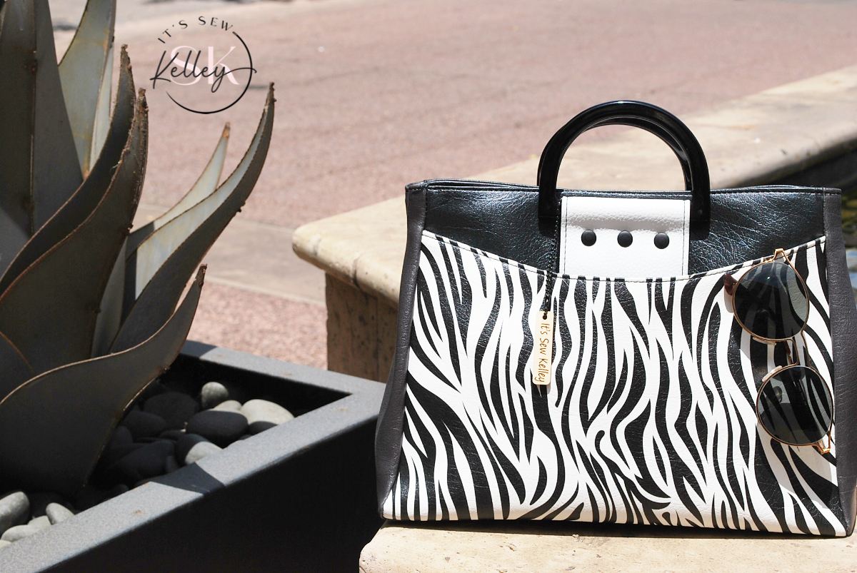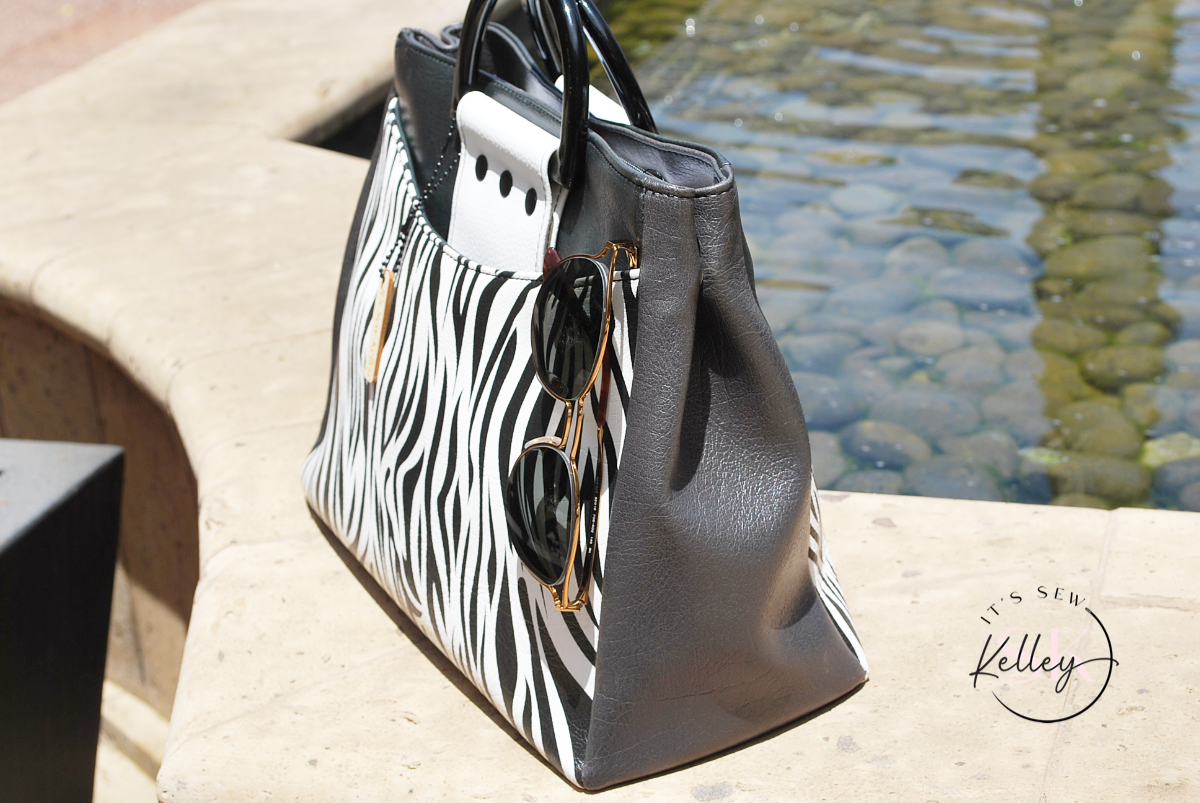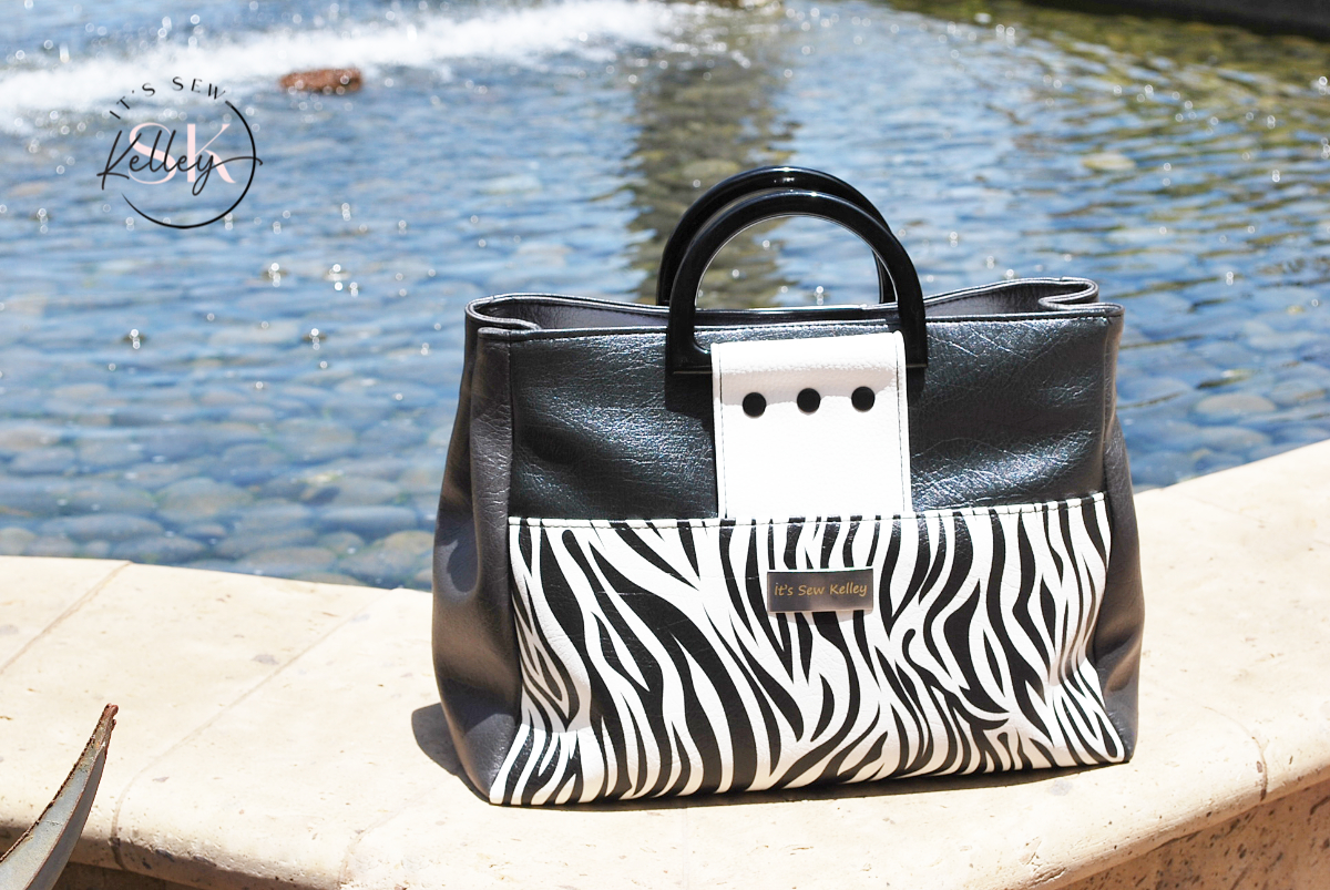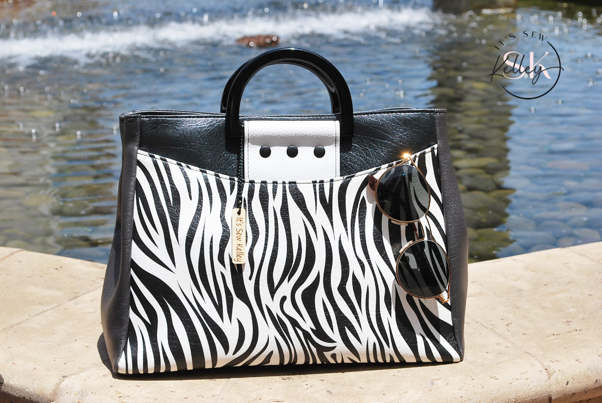 Say “Si Vous Plait” to my latest creation, the France Handbag. So stylishly elegant, heads are sure to turn as they scour the bag for a Prada logo — only to find an SK one instead (Sew Kelley)! This gorgeous bag features a large front pocket that secures with strong magnets. The bag’s unique shape is formed by two magnets which hold the bag’s sides together. The bag is secured with a deep recessed zipper and inside you’ll find plenty of room for all your necessities plus a large zippered pocket to keep your phone or keys safe and secure. Gorgeous zebra print and stylish black lacquered handles just scream “ooooh la la!”